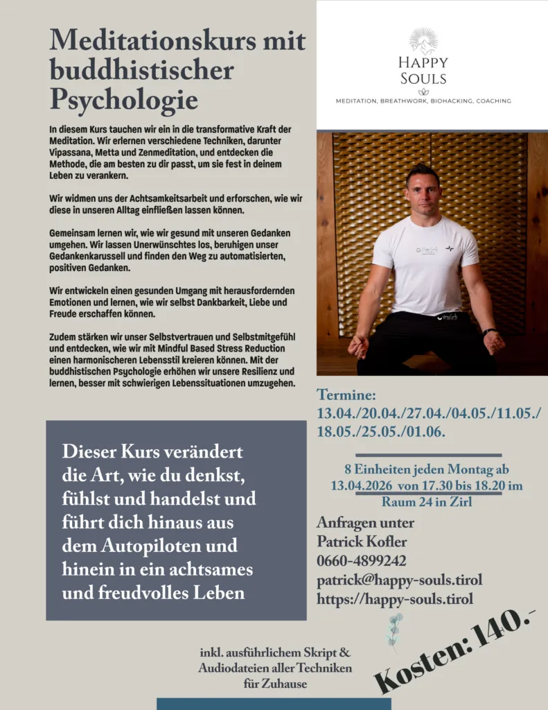 Entdecke Achtsamkeit, Meditation, Buddhistische Psychologie, Mentaltraining, Breathwork und Biohacking und Longevity mit Happy Souls für dich. Finde Hilfe zur Selbsthilfe